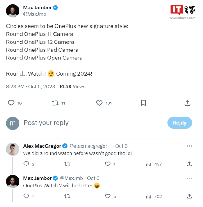 據爆料者 Max Jambor 透露,一加 Watch 2 將于 2024 年推出,采用圓形設計,他還聲稱(chēng) Watch 2“效果會(huì )更好”。
