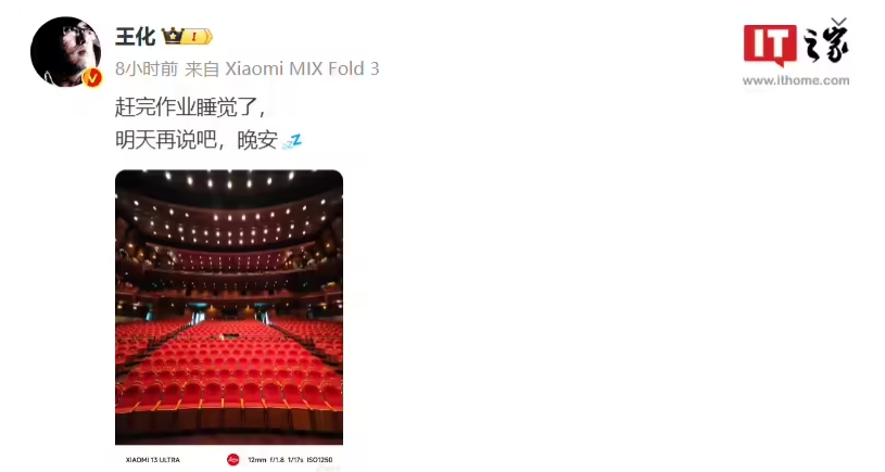 值得一提的是,小米王化昨晚發(fā)布了一張國家大劇院照片,并配文“明天再說(shuō)吧”。而據博主 @智慧皮卡丘 昨天下午爆料,小米 14 系列手機將從這周起(10 月 16 日-10 月 23 日)開(kāi)始預熱。同時(shí),他還聲稱(chēng)“這次發(fā)布會(huì )內容很多,標準版還有專(zhuān)門(mén)為女性設計的機身”。
