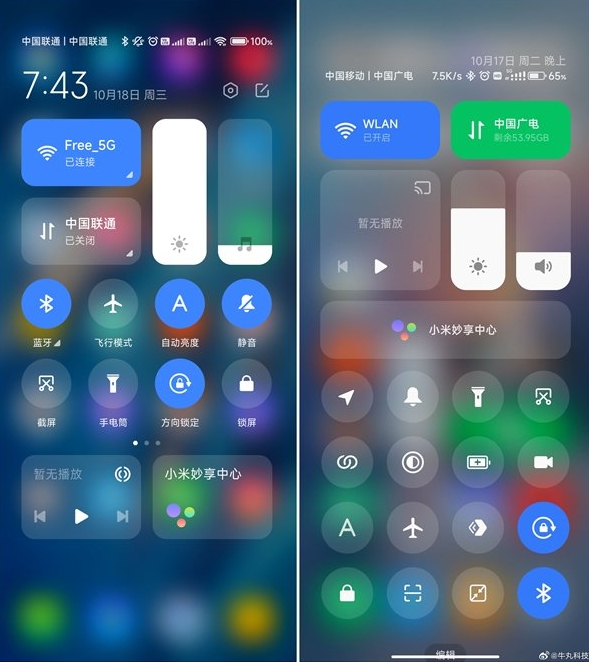 小米澎湃OS系統界面曝光:控制中心大變