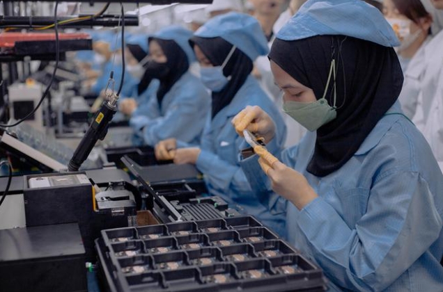 從雅加達市中心出發(fā)在擁堵的車(chē)流中行駛約兩個(gè)小時(shí),便可抵達坐落在機場(chǎng)附近、占地面積13萬(wàn)平方米的OPPO制造工廠(chǎng)。據悉,OPPO是首家在印尼設廠(chǎng)的中國手機廠(chǎng)商,該工廠(chǎng)自2020年開(kāi)始建設,投資5億元,員工峰值為2000人,設計產(chǎn)能2800萬(wàn)臺/年,廠(chǎng)區的環(huán)境和國內工廠(chǎng)的流水線(xiàn)并無(wú)二致,不同的是98%以上的員工都是印尼本地人。
