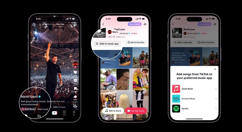 TikTok 推出新功能,可將歌曲添加到 Apple Music、Spotify 和 Amazon Music 音樂(lè )庫中 09:21:28