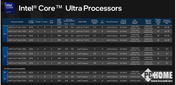本次發(fā)布的酷睿Ultra系列處理器共有8款,包括4款U系列和4款H系列,最高16核心22線(xiàn)程的酷睿Ultra 7 165H的最大功耗可以達到64瓦(PL1),明年還會(huì )有最高運行頻率高達5.1GHz的Ultra 9 185H推出,最大功耗來(lái)到115瓦。