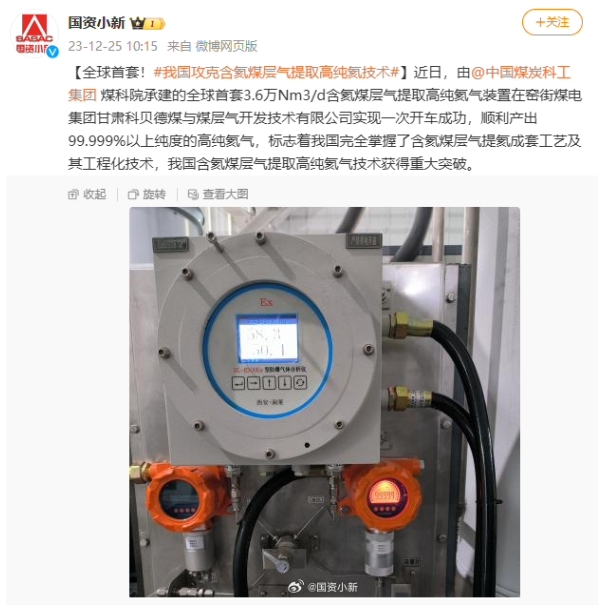 近日,由中國煤炭科工集團煤科院承建的全球首套 3.6 萬(wàn) Nm3 / d 含氦煤層氣提取高純氦氣裝置在窯街煤電集團甘肅科貝德煤與煤層氣開(kāi)發(fā)技術(shù)有限公司實(shí)現一次開(kāi)車(chē)成功,順利產(chǎn)出 99.999% 以上純度的高純氦氣,標志著(zhù)我國完全掌握了含氦煤層氣提氦成套工藝及其工程化技術(shù),我國含氦煤層氣提取高純氦氣技術(shù)獲得重大突破。