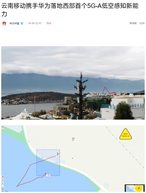 可實(shí)時(shí)測量無(wú)人機位置精度,華為、云南移動(dòng)在大理洱海完成西部首個(gè) 5G-A 通感一體低空試點(diǎn) 09:28:22