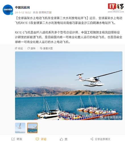 全球首架:國產(chǎn) RX1E-S 水上電動(dòng)飛機在全球第二大水利發(fā)電站開(kāi)飛 10:01:22