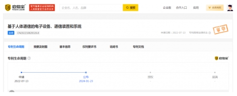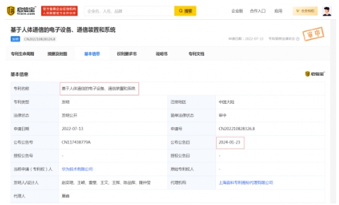 昨日,華為技術(shù)有限公司申請的“基于人體通信的電子設備、通信裝置和系統”專(zhuān)利公布。