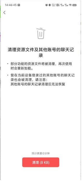 要是這兩個(gè)清理選項能夠再一分為二就好了,畢竟有時(shí)候我們只需要清理資源文件,并不是清理聊天記錄嘛。