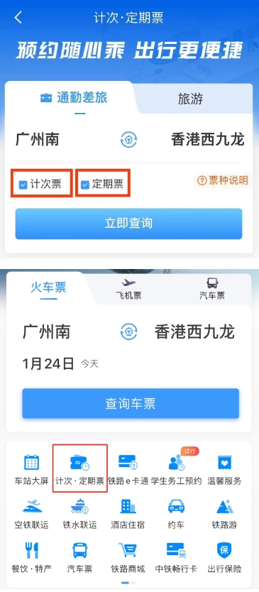 香港地區西九龍站僅支持在 12306 官網(wǎng)和“鐵路 12306”App 預約席位,暫不支持自動(dòng)售票機提前預約席位,也不支持直接刷證獲取席位。