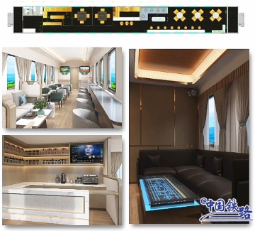 該趟專(zhuān)列可提供休閑度假、美食觀(guān)光、研學(xué)旅行等多種主題,編組 17 輛,全列定員 466 席,包括高級軟臥 3 輛、高級硬臥 10 輛、餐車(chē) 1 輛、多功能娛樂(lè )車(chē) 1 輛、宿營(yíng)車(chē) 1 輛、發(fā)電車(chē) 1 輛。