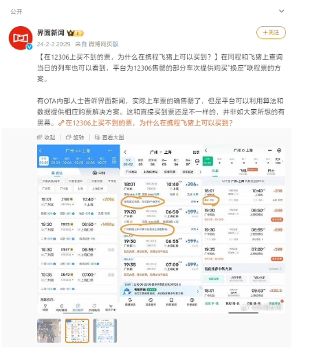 有 OTA 內部人士稱(chēng),“實(shí)際上車(chē)票的確售罄了,但是平臺可以利用算法和數據提供相應購票解決方案。這和直接買(mǎi)到票還是不一樣的,并非如大家所想的有黑幕。”