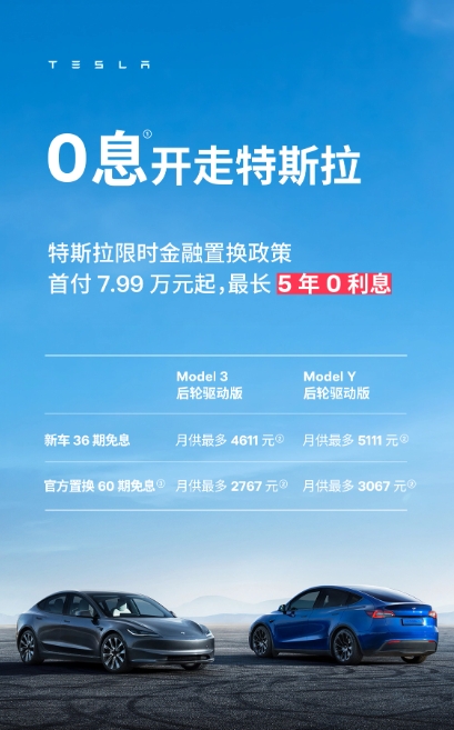 特斯拉中國宣布,針對 Model 3 / Y 車(chē)型上線(xiàn)限時(shí)低息置換政策,并首次推出“0 利息”分期購車(chē)的優(yōu)惠政策。