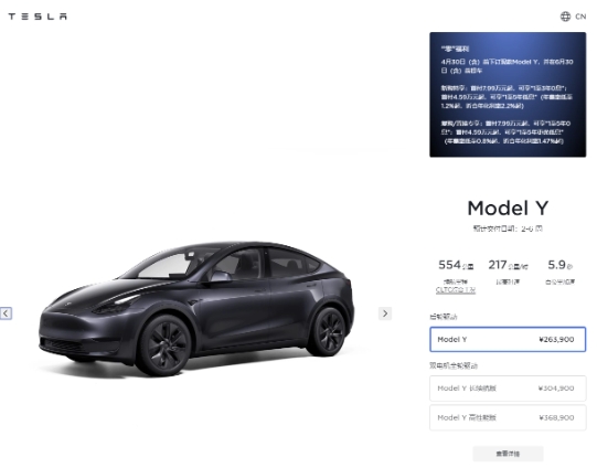 今年 4 月 1 日,特斯拉 Model Y 宣布漲價(jià) 5000 元,Model Y 長(cháng)續航版漲價(jià)至 304900 元,Model Y 高性能版漲價(jià)至 368900 元。特斯拉 Model Y 預計交付日期為 2-6 周。