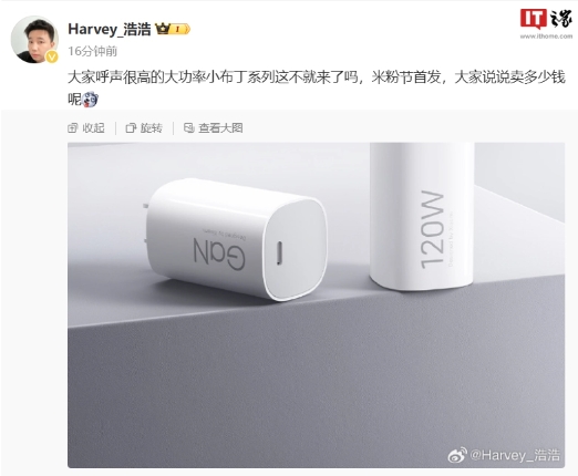 小米 120W 小布丁氮化鎵充電器亮相,2024 年米粉節首發(fā) 09:25:35