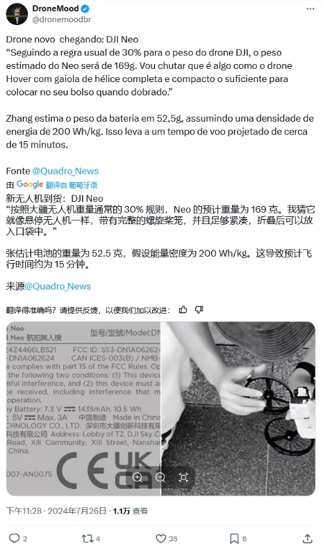 IT之家 7 月 30 日消息,消息源 @dronemoodbr 于 7 月 26 日在 X 平臺發(fā)布推文,分享了大疆 Neo 無(wú)人機的相關(guān)信息。