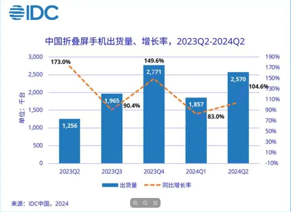 2024 年第二季度,中國折疊屏手機市場(chǎng)持續升溫,出貨量達到257萬(wàn)臺,同比實(shí)現三位數增長(cháng)。