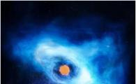 脈沖星及脈沖星風(fēng)云系統的示意圖,中間的橙色部分代表脈沖星(僅為示意繪制,天體大小不反映實(shí)際比例)?! ∮浾?7日從中國科學(xué)院高能物