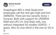 6 月 17 日消息,高通驍龍 855 旗艦平臺已經(jīng)商用,有關(guān)下一代旗艦平臺驍龍 865 的信息開(kāi)始被曝光,消息人士稱(chēng)高通驍龍 865 旗